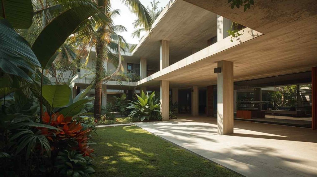 Tropical Modernism merges clean, modernist forms with solutions suitable for tropical climates. It emphasizes open-plan layouts, large windows, shaded areas, and materials that interact harmoniously with the environment.
